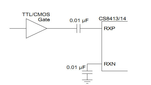 C22 and C14 with 0.01uF capacitors as per the CS8414 datasheet. The TORX177